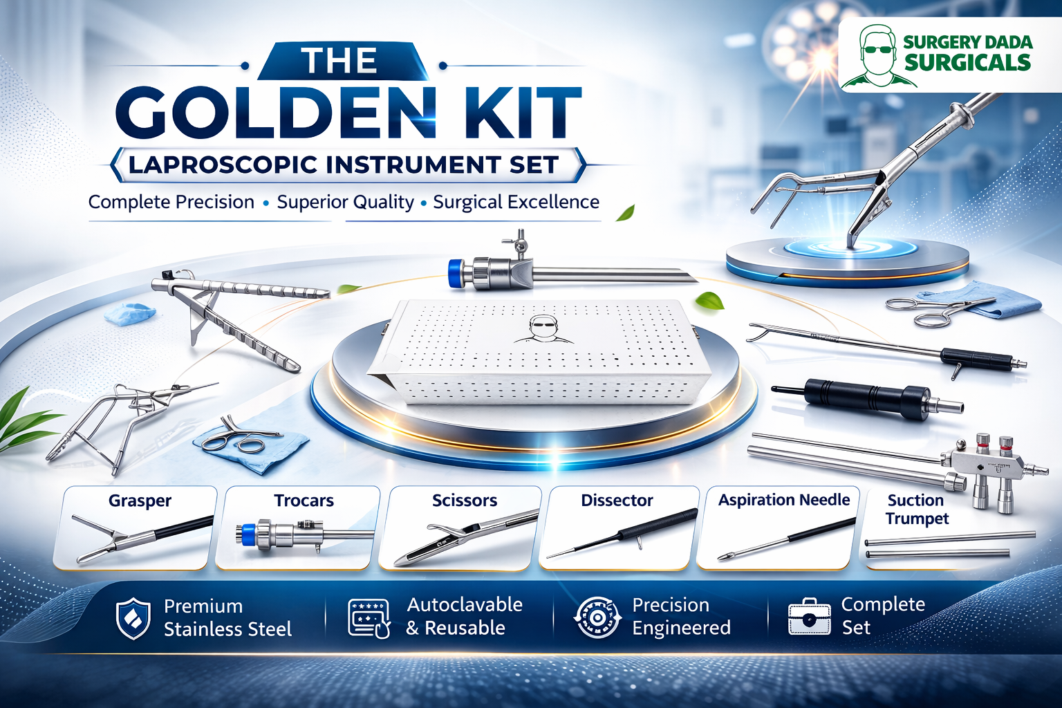 The Golden Kit is a meticulously curated collection of essential laparoscopic and surgical instruments. Engineered for precision and durability, this kit serves as the foundation for both rigorous medical training and professional surgical procedures, ensuring reliability when it matters most.